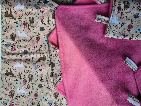 Deze fleurige set is met een bloemenprint katoenstof en paars fleece gematcht. Deze set knalt zeker in je kooi en staat niet alleen in de zomer heel mooi, maar is ook vrolijk voor in de winter!