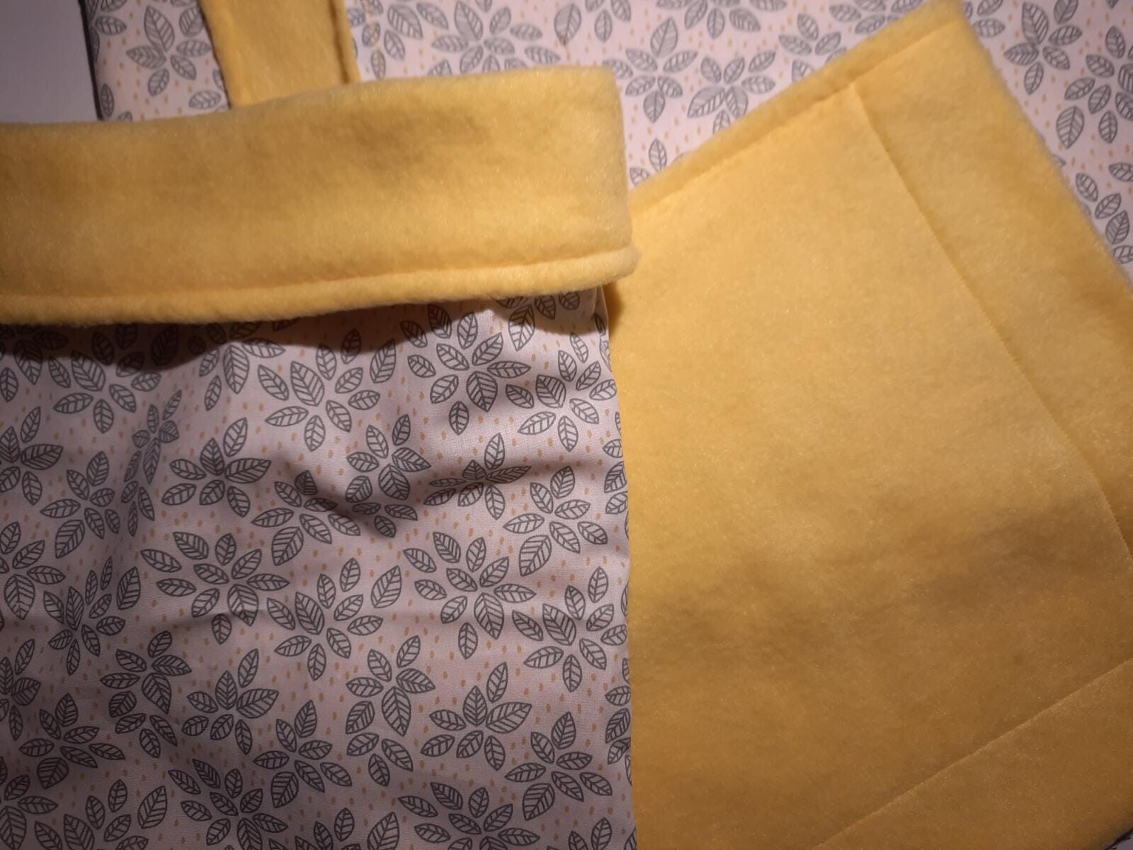Deze vrolijke set is met een mooie witte katoenstof met bloemenprint en geel fleece gemaakt. Het is een kleinere set, erg fijn bij bijvoorbeeld een Ferplast Furet te gebruiken of als je vaak afwisseling in de kooi wilt.